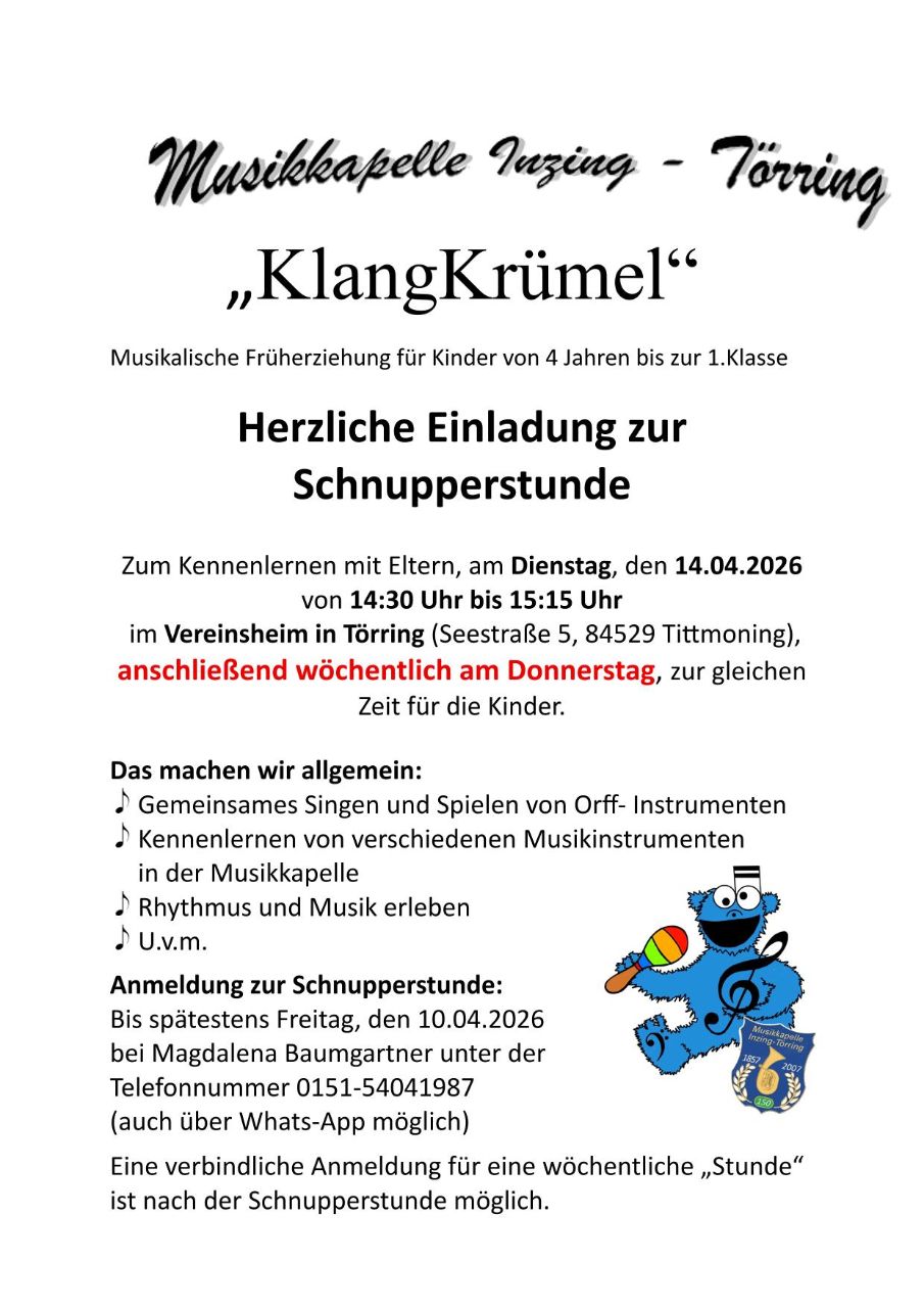 Wir, die Musikkapelle Inzing Törring befinden uns im April im zu Ende gehenden Winterschlaf, die Termine beginnen und wir sind voller Vorfreude auf die kommende „Saison“.