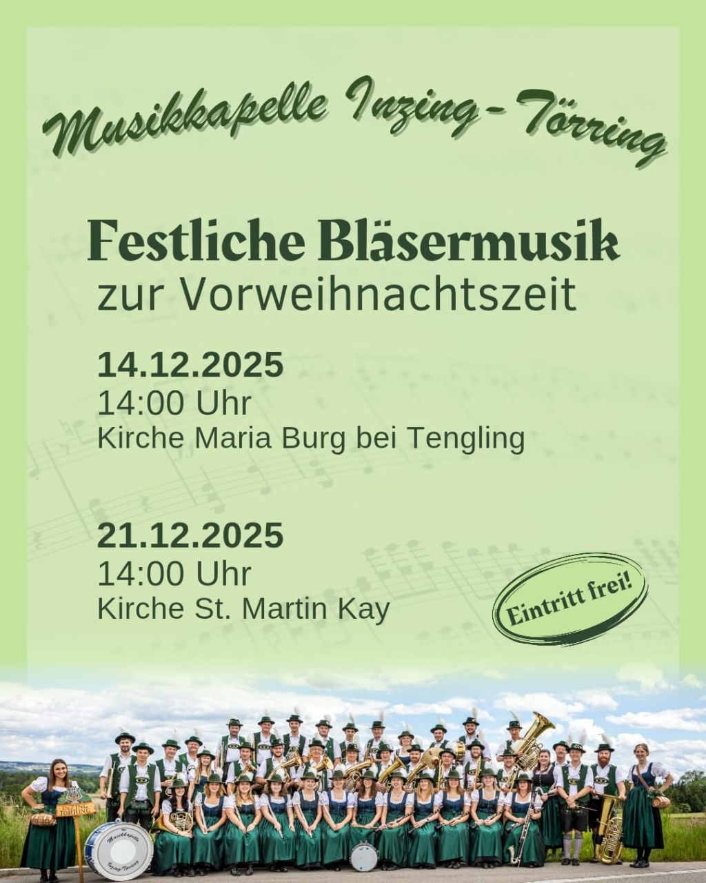 Die Früchte dieser Arbeit können unter anderem bei den Kirchenkonzerten, am 3. und 4. Advent in Burg bei Tengling und in Kay, geerntet werden.